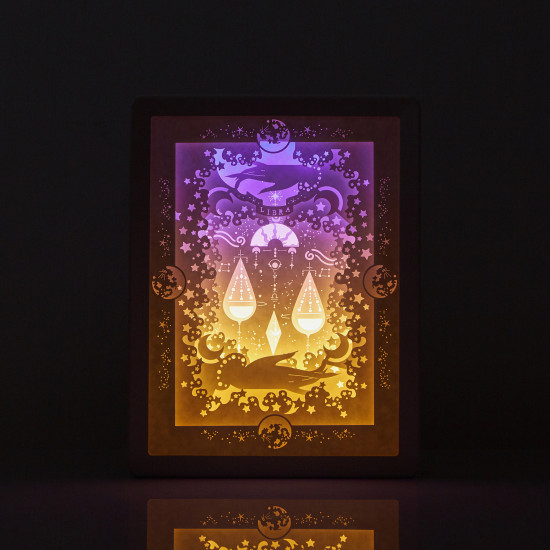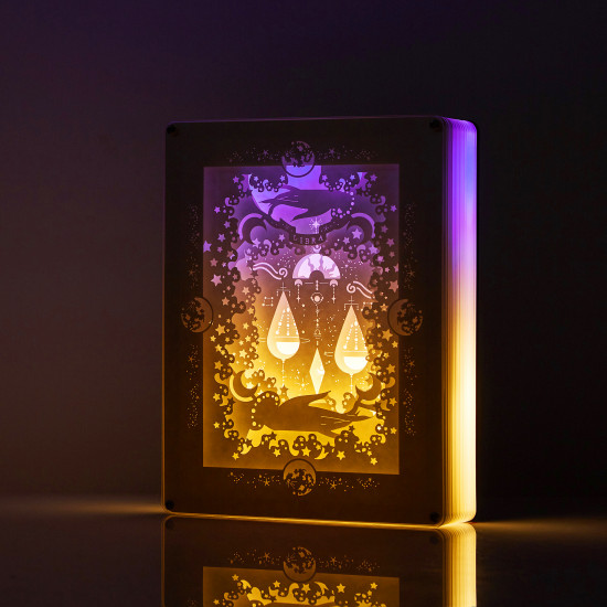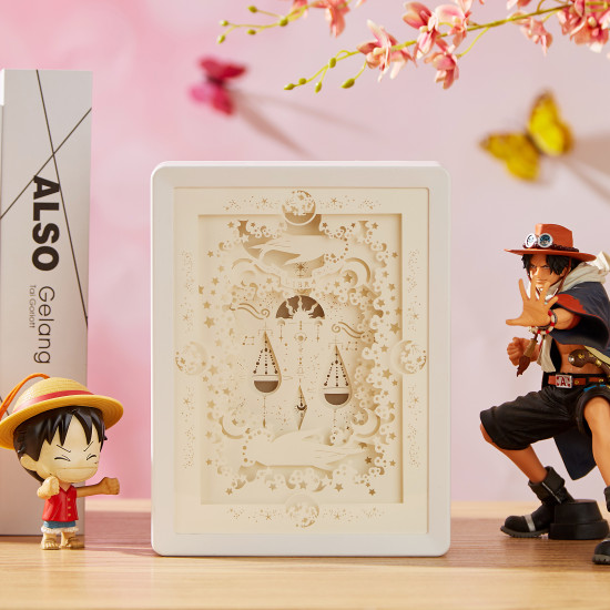 constellation - libra 3D Paper cut Lightbox is a stylish and creative paper-cut light lamp with multi (contours) layers overlay to form dreamy soft lights. Each layer has a unique silhouette design, one of the best choices for lighting up your home and adding a beautiful glow to your bedside table. Perfectly combine the charming paper sculptures with lightboxes to create a warm night light, as if there is a hidden magical fairy tale that we want to explore.