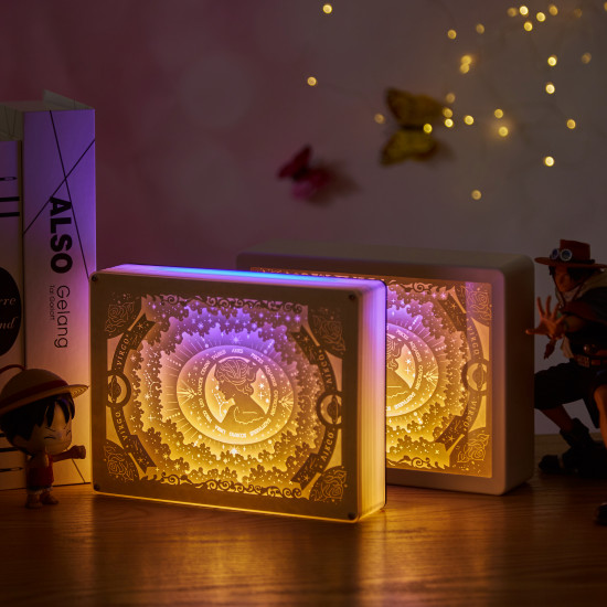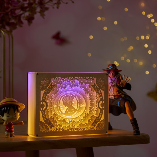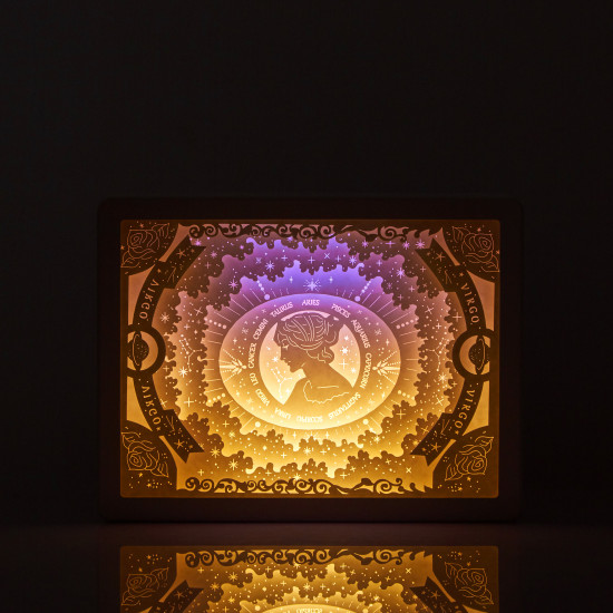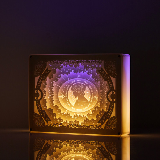 constellation - VIRGO 3D Paper cut Lightbox is a stylish and creative paper-cut light lamp with multi (contours) layers overlay to form dreamy soft lights. Each layer has a unique silhouette design, one of the best choices for lighting up your home and adding a beautiful glow to your bedside table. Perfectly combine the charming paper sculptures with lightboxes to create a warm night light, as if there is a hidden magical fairy tale that we want to explore.