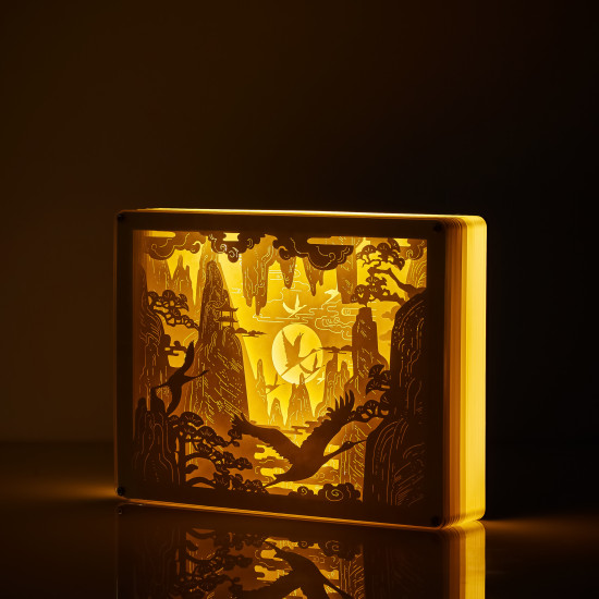 Crane 3D Paper cut Lightbox is a stylish and creative paper-cut light lamp with multi (contours) layers overlay to form dreamy soft lights. Each layer has a unique silhouette design, one of the best choices for lighting up your home and adding a beautiful glow to your bedside table. Perfectly combine the charming paper sculptures with lightboxes to create a warm night light, as if there is a hidden magical fairy tale that we want to explore.